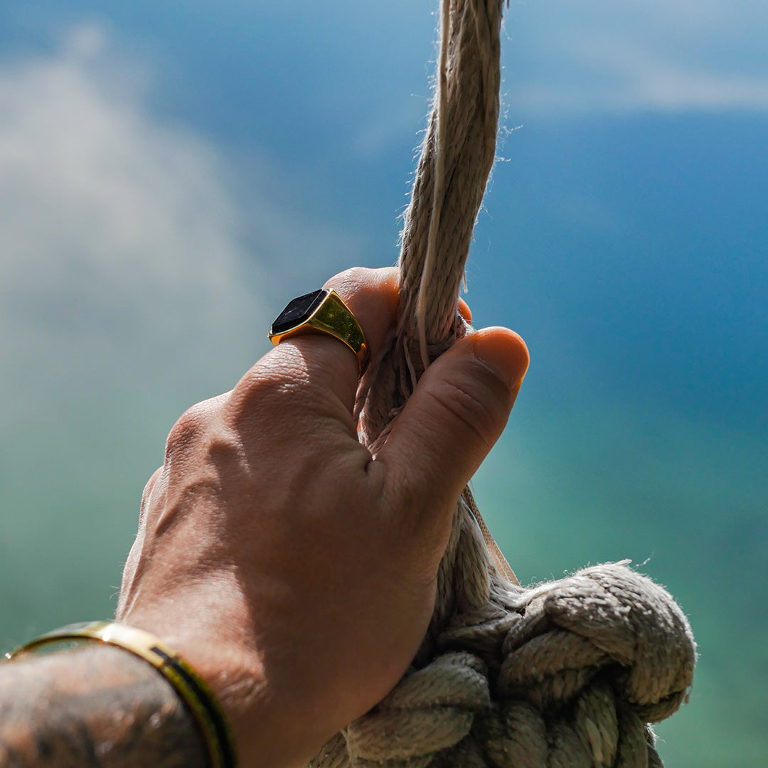 Kvalitet er ikke et salgstrick. Det er en nødvendighed. Derfor er alle vores guldtonede ringe lavet af 316L kirurgisk stål. Det er et materiale, der er kendt for sin ekstreme holdbarhed og modstandsdygtighed. Det er rustfrit, ridsefast og hypoallergenisk. Guldbelægningen er en PVD-coating (Physical Vapor Deposition), en teknik, der er lånt fra luksusure. Den sikrer, at farven ikke falmer eller skaller af, selv efter utallige ture i saltvand, svedige træningspas eller kolde vintre. Hver ring er testet i Danmark for at sikre, at den lever op til vores standarder. Vi tester for svage punkter. Vi tester pasform. Vi tester, at den kan holde til dit liv. Se hele vores kollektion af ringe til mænd og find det, der passer til dig.